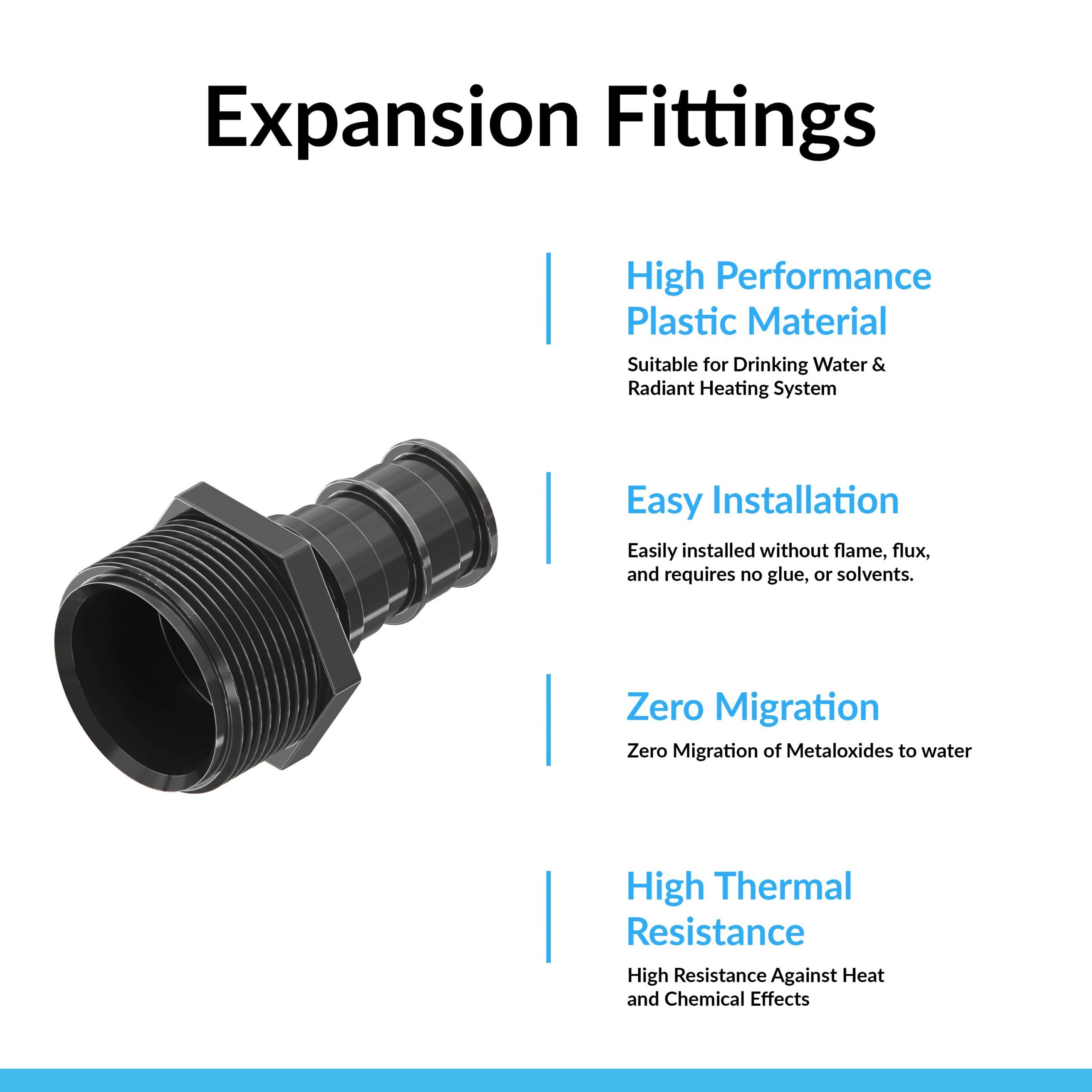 - ✔️【 Lead Free Non-Pollution PPSU polyphenylsulfone Material 】: Easily installed without flame, flux, or solder and requires no bonding agents, glue, or solvents. Poly Alloy pex Fittings are suitable for domestic water or radiant heating system, also used retrofit construction and for hot or cold water distribution.
