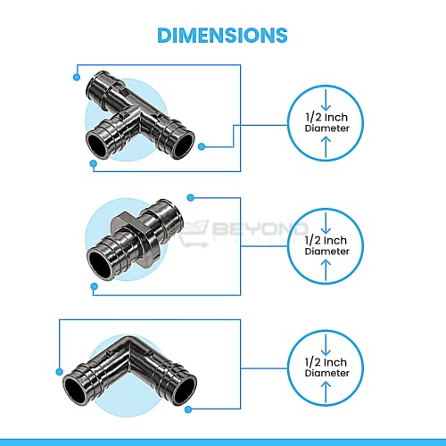 ✔️【 Warning Before Making Purchase 】: Package of 30 only includes 1/2″ inch Poly Elbow 10 pcs, Tee 10pcs & Coupler 10 Pcs for PEX A plumbing systems. NOTE: Expansion Tool & PEX Ring/Sleeve Not Included in package.. Also, both 1/2 inch diameter must be considered for all side’s openings. Manufactured in accordance with ASTM F-1960,CSA B137.5 Listed under cUPC, NSF/ANSI 61, NSF/ANSI 372.