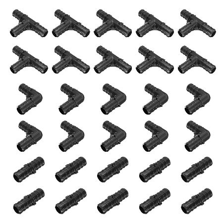 1/2″ Pex Plastic Fittings with Pex Tees “T” ,Pex Elbows, Pex Couplers for Copper Crimp/Cinch Rings Poly Alloy PEX Fittings Combo for Pex A & Pex B Pipe in Plumbing [Pack of 30 Black]