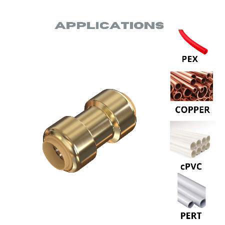 - ✔️ 【 Applications 】: This Push Fit couplers fittings can be used in plumbing jobs and connects PEX Pipe in water distribution and hydronic heating systems.
